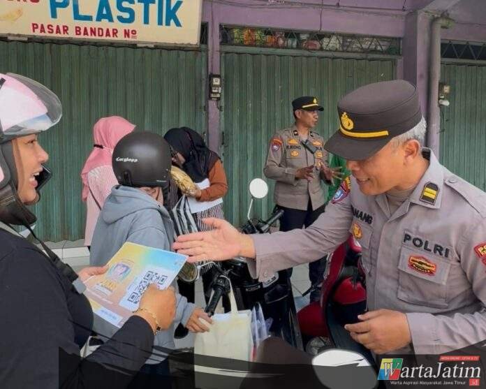 Kediri Kota – Wartajatim.id || Satuan Pembinaan Masyarakat (Satbinmas) Polres Kediri Kota melaksanakan kegiatan sosialisasi program Polisi Penolong kepada masyarakat di sejumlah titik keramaian, seperti pusat perbelanjaan (mall), stasiun, dan pasar tradisional, guna meningkatkan kehadiran Polri di tengah aktivitas masyarakat, Jum’at (9/1/2026)