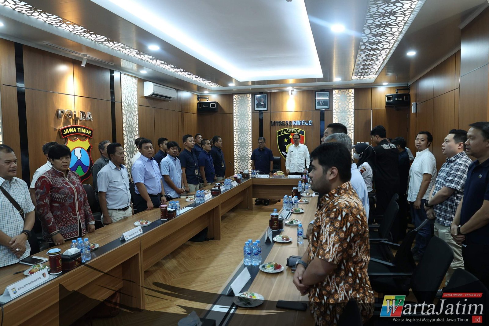 Rakor ini dihadiri unsur internal Polda Jatim, perwakilan instansi pemerintah dan pelaku usaha pangan, mulai dari Perum Bulog Jatim, Disperindag Provinsi Jatim, DPMPTSP, Dinas Pertanian dan Ketahanan Pangan, hingga sejumlah perusahaan produsen dan distributor pangan, asosiasi, koperasi, dan paguyuban peternak di Jawa Timur.