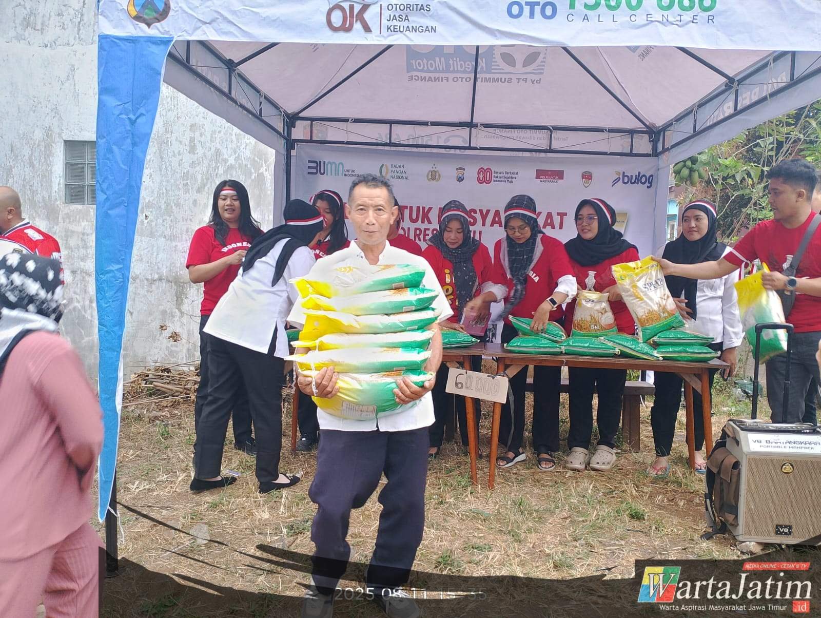KOTA BATU – Wartajatim.id || Menyambut HUT ke-80 Kemerdekaan Republik Indonesia, Polres Batu Polda Jawa Timur (Jatim) melalui Satreskrim menggelar Gerakan Pangan Murah di Kecamatan Junrejo, Kota Batu, Senin (11/8/2025).