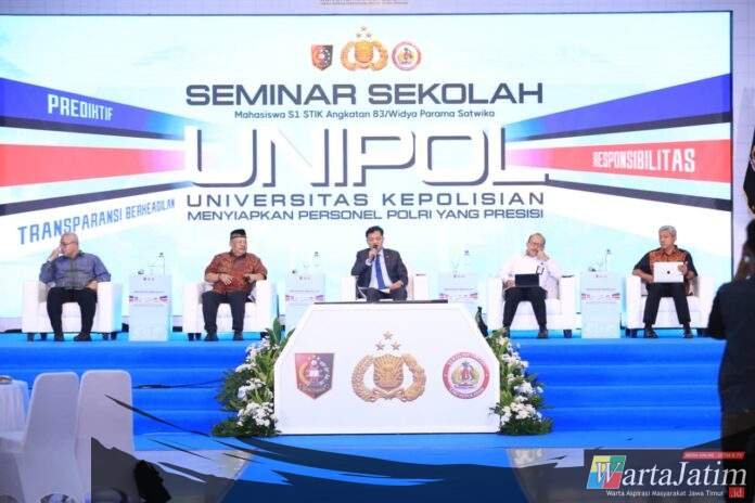Jakarta – Wartajatim.id || Sekolah Tinggi Ilmu Kepolisian (STIK) Lemdiklat Polri menggelar Seminar Sekolah bertema “UNIPOL: Menyiapkan Personel Polri yang Presisi” di Auditorium Mutiara STIK Lemdiklat Polri, Jakarta Selatan, Senin (13/4). Kegiatan ini menjadi forum dialog strategis yang mempertemukan pemangku kebijakan, akademisi, dan praktisi guna memperkuat arah kebijakan pendidikan serta pengembangan sumber daya manusia Polri.
