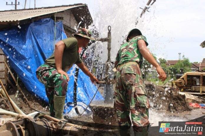 KEDIRI — Wartajatim.id || Sumur bor yang dibangun melalui program TNI Manunggal Membangun Desa (TMMD) di Dusun Templek, Kabupaten Kediri, kini mulai mengeluarkan air bersih setelah proses pengeboran mencapai kedalaman sekitar 100 meter, Senin (2/3/2026).