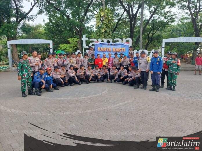 Krian,Wartajatim.id – Detik detik jelang peringatan HUT Brimob yang ke 80 Korps Brimob Polri , Satuan Brimob bersama Polsek/Koramil Krian melakukan kegiatan Corve/Kerja Bakti bersama bersih bersih Taman Abirupa Krian Kabupaten Sidoarjo, Selasa tanggal 21/10/25.