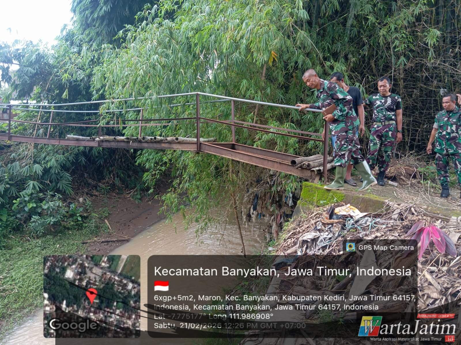 KEDIRI – Wartajatim.id || Dalam upaya memastikan keamanan infrastruktur dan meningkatkan konektivitas antar wilayah,Koramil 0809 – 05 Grogol Kediri melaksanakan peninjauan langsung dan survei teknis pada jembatan gantung di desa maron,desa parang,kecamatan banyakan,serta desa kaliboto,kecamatan tarokan Kediri,(22/02/2026).
