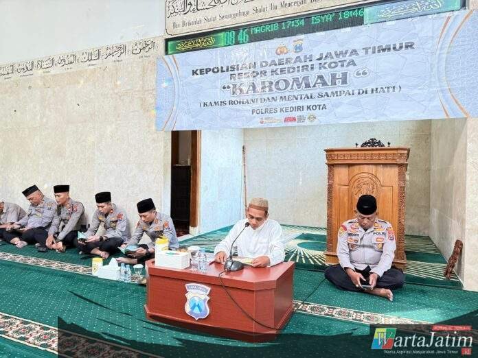 Kediri – Wartajatim.id || Dalam rangka memperkuat keimanan dan membentuk karakter personel yang berintegritas, Polres Kediri Kota kembali melaksanakan kegiatan Bimbingan Rohani dan Mental (Binrohtal) rutin yang dikemas dalam kegiatan Karomah (Kamis Rohani dan Mental Sampai di Hati) yang digelar setiap Kamis pagi. Kegiatan ini dilaksanakan usai apel pagi jam pimpinan bertempat di Masjid Baiturrahim Polres Kediri Kota, Kamis (31/07).