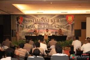 Kediri Kota – Wartajatim.id || Polres Kediri Kota melalui Seksi Hukum (Si Hukum) bersama Satuan Reserse Kriminal (Satreskrim) menggelar sosialisasi perubahan Kitab Undang-Undang Hukum Pidana (KUHP) dan Kitab Undang-Undang Hukum Acara Pidana (KUHAP), Rabu (4/2/2026). Kegiatan tersebut dilaksanakan mulai pukul 08.00 WIB hingga selesai di Ballroom Tegowangi Grand Surya Hotel, Kota Kediri.