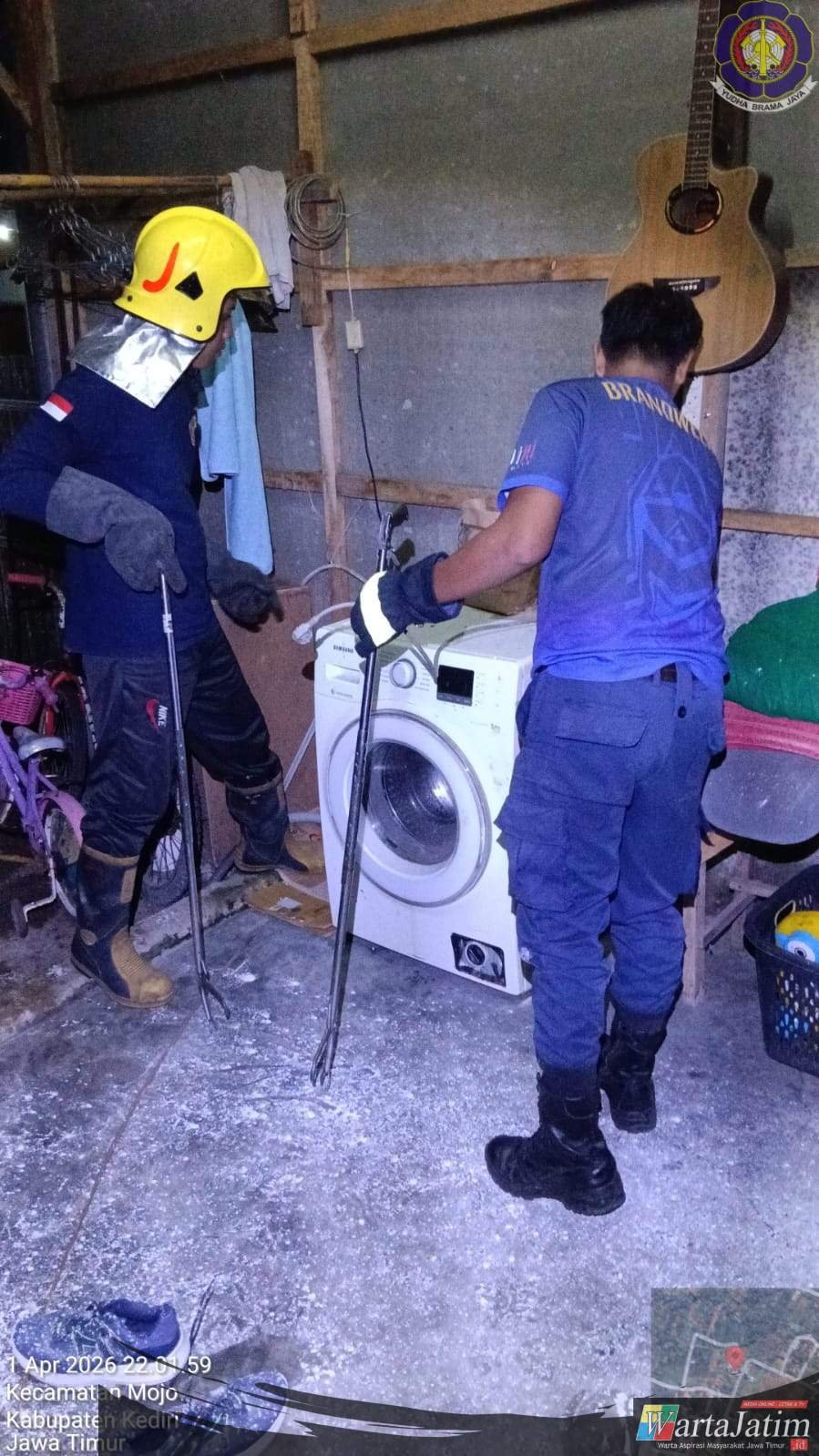 Kediri – Wartajatim.id || Damkar Kabupaten Kediri berhasil mengevakuasi ular jenis Cobra Jawa dengan panjang 400 cm yang masuk ke rumah warga di Dusun Gedangan, Desa Mojo RT 001 RW 004, Kecamatan Mojo, Kabupaten Kediri, Rabu (1/4/2026) malam.