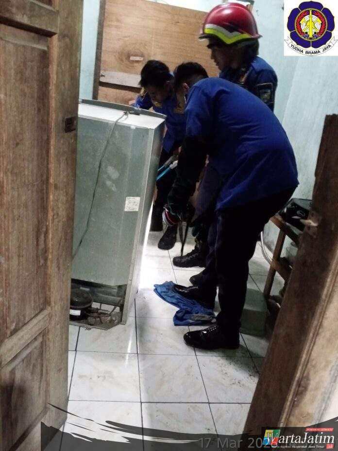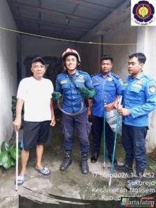 Kediri – Wartajatim.id || Seekor ular Cobra sepanjang setengah meter dan berat 7 ons tanpa perlawanan berhasil diamankan Tim Damkar Kabupaten Kediri Pos Grogol saat berada di rumah Dian Ayu warga RT. 004 / RW. 016, Dusun Tepus, Desa Sukorejo, Kecamatan Ngasem, Kabupaten Kediri,Selasa (17/3/2026) siang.