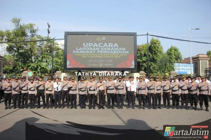 Kediri Kota – Wartajatim.id || Polres Kediri Kota menggelar Upacara Kenaikan Pangkat Pengabdian bagi salah satu personelnya yang mendapat penghargaan atas dedikasi dan pengabdian selama bertugas di institusi kepolisian. Upacara dilaksanakan pada Senin (29/9/2025) pukul 08.00 WIB bertempat di Halaman Apel Polres Kediri Kota.