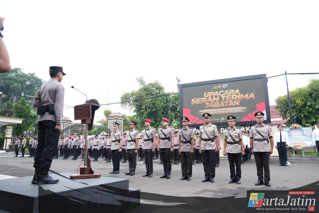 Kediri Kota – Wartajatim.id || Serah terima jabatan (sertijab) sejumlah pejabat utama Polres Kediri Kota menjadi momentum penting dalam dinamika organisasi Polri. Rotasi yang tertuang dalam keputusan pimpinan Polri Desember 2025 ini menandai promosi dan penugasan ke tingkat yang lebih tinggi bagi Wakapolres dan Kasatreskrim Polres Kediri Kota.