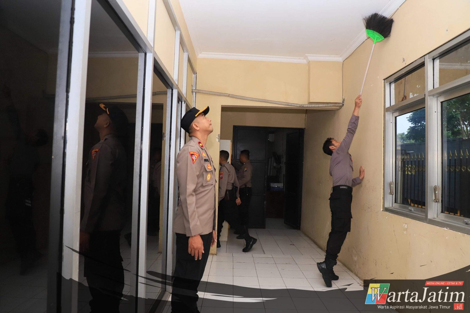 Kegiatan yang digelar di lingkungan Polres Kediri Kota tersebut difokuskan pada implementasi program “1 Jam Awal Resik” yang menjadi bagian dari gerakan ASRI harian. Program ini mewajibkan seluruh personel memulai aktivitas dinas dengan membersihkan ruang kerja, meja kerja, serta merapikan berkas dan administrasi.