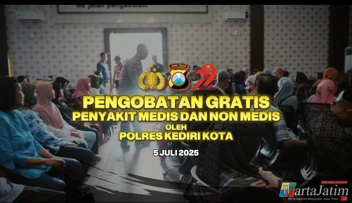 Kediri Kota – Wartajatim.id || Kapolres Kediri Kota AKBP Bramastyo Priaji, S.H., S.I.K., M.Si., melaksanakan kegiatan pengobatan gratis bagi masyarakat dengan pelayanan penyakit medis dan non medis di Aula Rupatama Polres Kediri Kota.